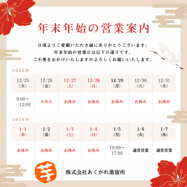 年末年始のお知らせです。